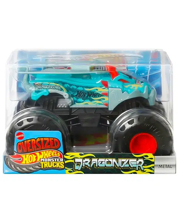 Hot Wheels Monster Trucks serisine özgü çarpışma dayanıklılığı, iri lastikleri ve agresif tasarım çizgileriyle Dragonizer, hem sahnede hem de koleksiyon raflarında tüm dikkatleri üzerine toplar.