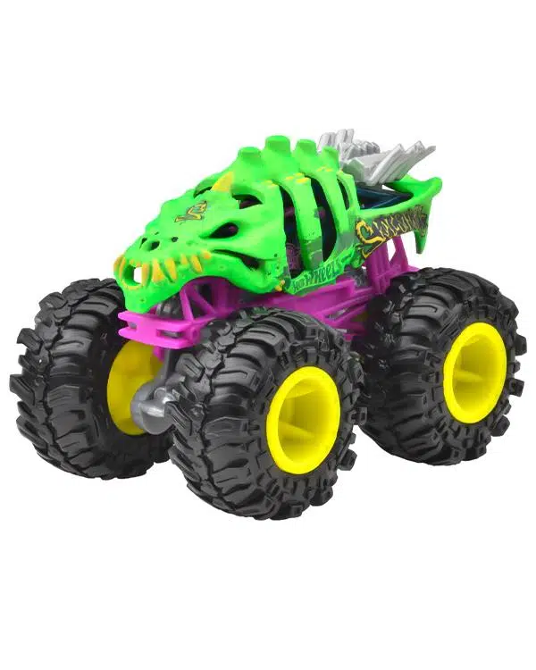 Gerçek bir canavar gücünü yansıtan bu model; fosil detayları, güçlü iskelet formu ve iri tekerlekleriyle en zorlu arazi koşullarını bile kolayca aşar. Metal gövdesi sayesinde sağlamlık ve premium kaliteyi bir arada sunan Skelesaurus, çocuklara sınırsız aksiyon ve hayal gücü dolu oyunlar vaat eder. Hot Wheels Monster Trucks serisine özgü çarpışma dayanıklılığı, dev lastikler ve dikkat çekici detay işçiliğiyle Skelesaurus, her yarışta gücün ve dayanıklılığın sembolü olur.