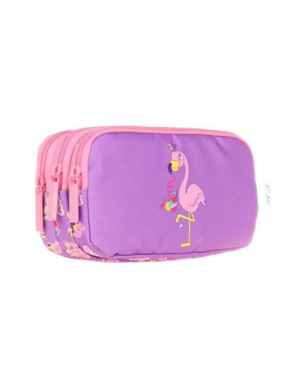 Kaukko Kids 3 Bölmeli Kalem Çantası Aynalı Taşlı Flamingo L8137