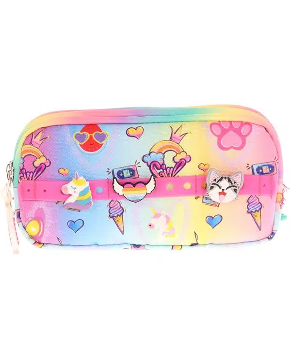 Kaukko Kids 3 Bölmeli Kalem Çantası Fancy Rainbow L8244, okul ve günlük kullanım için özel olarak tasarlanmış şık ve dayanıklı bir modeldir. Rengârenk gökkuşağı deseniyle öne çıkan bu kalem çantası, çocukların enerjik tarzını yansıtırken aynı zamanda kırtasiye malzemelerini düzenli bir şekilde taşımalarına yardımcı olur. Kalemlik üzerindeki sökülüp takılabilen silikon aksesuarlar ile çocuklar için daha eğlenceli hale gelir. Kalem, silgi, kalemtıraş ve küçük aksesuarlar için ideal geniş iç hacmi sayesinde pratik ve düzenli kullanım imkânı sunar.