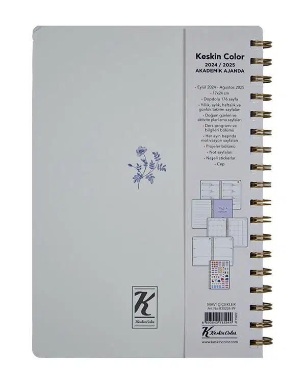 | Etiketler | Keskin Color 2024/2025 Akademik Ajanda Mavi Çiçekler |