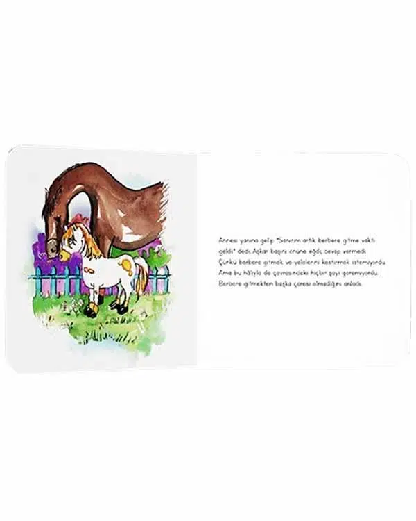 Berbere gitmekten korkan Aşkar’ı makasından çıkardığı seslerle sakinleştiren berber Aşkar’ın berber korkusunu yenmesini sağladı. Görsellerle desteklenen bu hikâyeyi okurken hiç sıkılmayacaksınız. Çocuklarınızın hayal dünyasının ve ince motor becerilerinin gelişimini destekler. Sert kartondan yapılan bu kitap yıpranmaya dayanıklıdır.