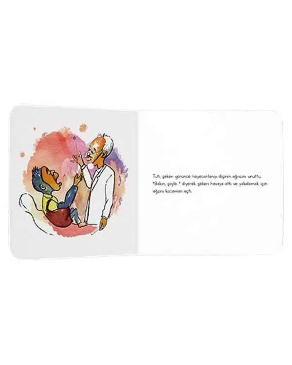 Tuti kendisini çok seven diş hekimi sayesinde diş ağrılarından kurtulacak. Görsellerle desteklenen bu hikâyeyi okurken hiç sıkılmayacaksınız. Çocuklarınızın hayal dünyasının ve ince motor becerilerinin gelişimini destekler. Sert kartondan yapılan bu kitap yıpranmaya dayanıklıdır.