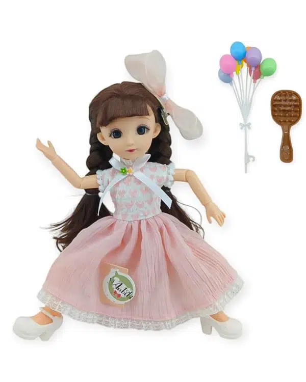 Bu versiyon, renkli balon demeti ve tarak aksesuarı ile birlikte gelir. Saç tarama, kutlama ve çeşitli hikâye kurgularını destekleyen bu aksesuarlar oyuna çeşitlilik katarken, 30 cm boyundaki bebek çocukların eline uygun yapısıyla eğlenceli bir oyun deneyimi sunar.