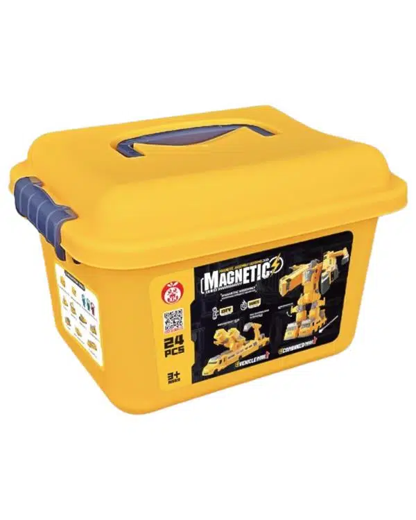 Kızılkaya Manyetik Dönüşebilir Araç ve İş Makineleri Yapım Seti Kutulu 24 Parça XH8569, 3 yaş ve üzeri çocukların yaratıcılık, tasarım ve ince motor becerilerini geliştirmeyi destekleyen manyetik bir yapı setidir. 24 parçadan oluşan set, mıknatıslı bağlantı sistemi sayesinde kolayca bir araya gelir; çocuklar vinç, kepçe, dozer, kamyon, mikser gibi iş makineleri ile robot ya da dönüşebilir araç modellerini özgürce tasarlayabilir.