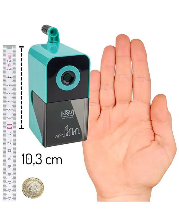 Kraf Kollu Kalemtraş, kalemlerinizi güvenle açmak için tasarlanmış, şık ve ergonomik bir üründür. Yeşil rengi ile dikkat çeken bu kalemtraş, hem estetik hem de işlevsellik açısından mükemmel bir seçenektir.