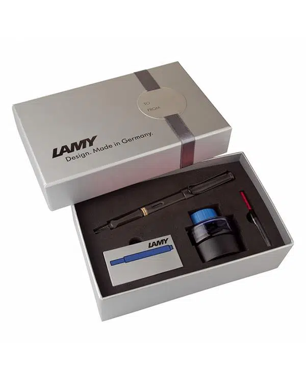 Özel günlerde sık tercih edilen, Lamy'nin klasik kalem grubu olan Safari dolma kalemi ve yedek aksesuarları ile birlikte set içinde.