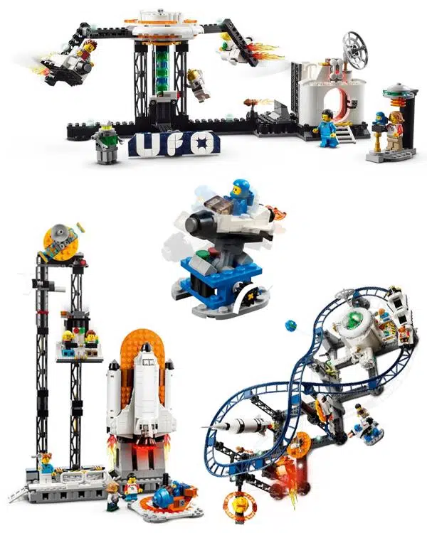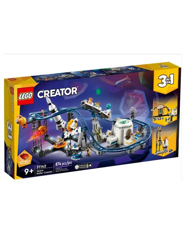 9 yaş ve üzeri çocukların kullanımı için uygundur. Lego Creator 3’ü 1 arada Uzay Hız Treni seti, heyecan dolu bir lunapark deneyimi sunar. Set, uzay roketi, Satürn ve Dünya modelleri, bir ay üssü ve kuyruklu yıldız gibi detaylarla zenginleştirilmiş inişli çıkışlı bir hız treni rayı içerir. Üç hareketli araba ve ışıklı bir meteor da bulunur. Ayrıca, bir astronot, bir baba ve iki çocuk, bir bilim insanı ve bir bebek astronot olmak üzere toplam 5 minifigür setin içinde yer alır.