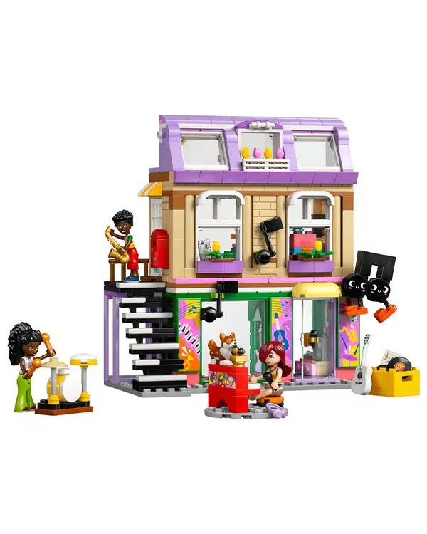 Müzik tutkusunu Lego dünyasında keşfet! Lego Friends Müzik Mağazası ve Daire, çocukların hayal gücünü ve yaratıcılığını geliştiren eğlenceli bir yapı setidir. Bu detaylı set, bir müzik mağazası ile üst katta yer alan renkli bir daireyi bir araya getirir. Mağazada davul, gitar, saksafon ve sokak piyanolu merdiven gibi müzik enstrümanları bulunur. Daire kısmında ise mini mutfak, masa, loft tarzı yatak, köpek kapısı ve evcil dost Marimba için özel alan yer alır.
