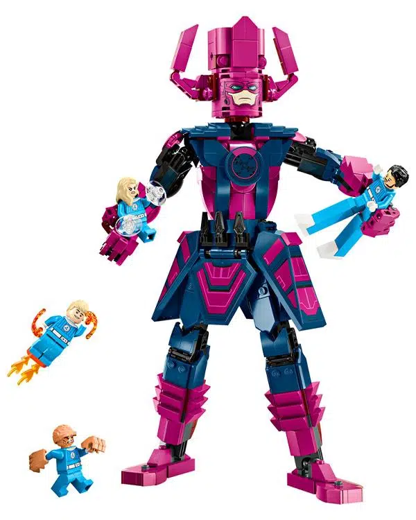 LEGO Marvel Fantastik Dörtlü: Galactus Yapım Figürüne Karşı (76316), Fantastik Dörtlü: İlk Adımlar filminden ilham alır. 427 parçalık set; Bay Fantastik, Alev Adam, Görünmez Kadın ve BenGrimm minifigürlerinin yanı sıra 28 cm boyunda, eklemli Galactus figürünü içerir.