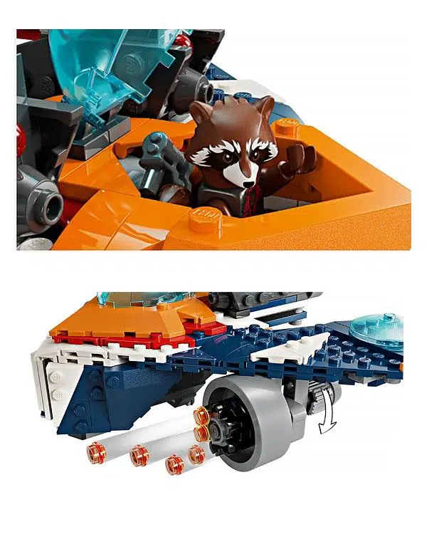 Tüm genç süper kahramanlar, çocuklar için bu inşa edilebilen oyuncak Lego Marvel uzay gemisine sahip olmaktan gurur duyacaktır. Çocuklar Marvel Studios’un Galaksinin Koruyucuları filminden Xandar Savaşı’nı canlandırabilir ve uzayda kendi sınırsız maceralarını yaşayabilir. Marvel Studios’un Galaksinin Koruyucuları hediyesi, sinema severler ile muhteşem hava araçlarının ve inşa edilebilen süper kahraman oyuncaklarının hayranları için mükemmel hediyedir. Uzay gemisinde bir minifigürlük yeri olan açılan bir kokpit, üzerinde 2 yaylı atıcı ve her kanadının altında 6 mermili bir mega atıcı bulunur. 2 minifigür içerir. Silah taşıyan Rocket ile pelerin giymiş ve güçlü Cosmi Rod çekicini taşıyan İthamkar Ronan.