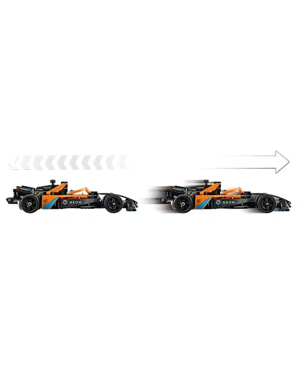 Çocuklar, Lego Technic Neom McLaren Formula E Yarış Arabası model setini inşa edip oynarken Formula E takımının dünyasını hayal edebilir. Çocuklar, aracı birleştirirken tatmin edici bir projenin keyfini çıkardıktan sonra, heyecan verici çifte çek-bırak fonksiyonuyla Formula E model arabalarını hızla ileri fırlatıp test edebilirler. Bu sayede, yarışmanın anını hayal edebilirler. Çocuklar, McLaren Yarış Arabası setiyle yaratıcı oyunlar oynarken direksiyon fonksiyonuyla oyuncak arabanın tekerleklerini hareket ettirebilirler. Ve direksiyon hareketleri sayesinde oyunları daha gerçekçi bir hal alır.