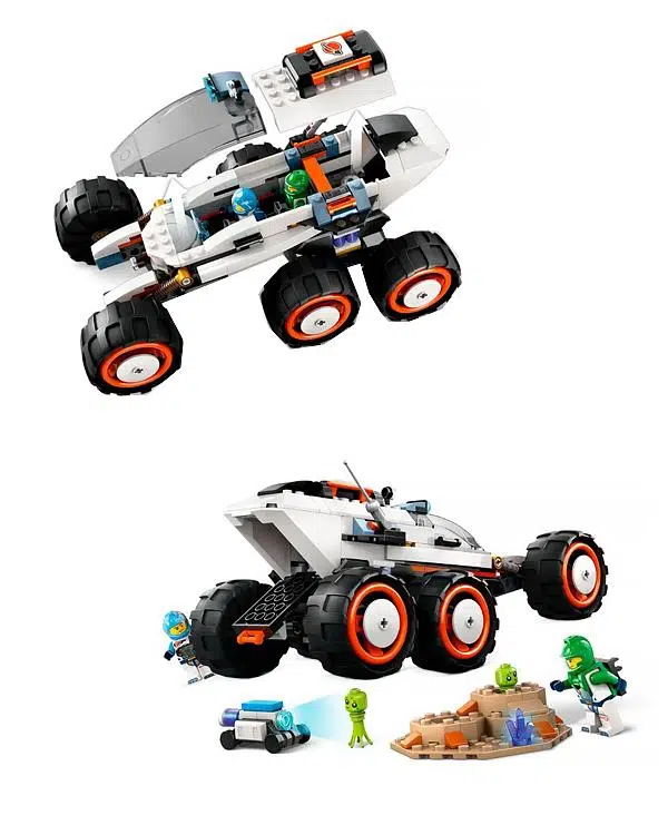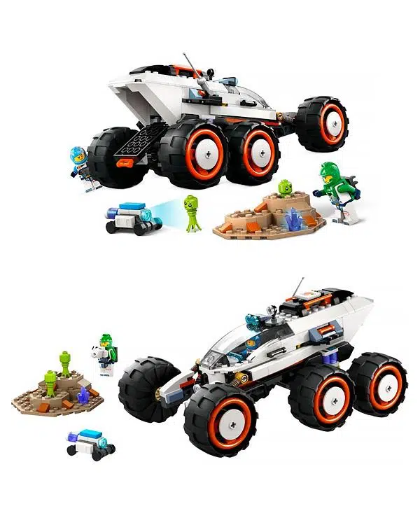 Lego City Uzay Kaşifi ve Uzaylı Yaşam setiyle yeni dünyaları keşfetmek çocuk oyuncağı haline geliyor. Sağlam keşif aracı, kayalık arazide ilerlemek için 6 büyük lastik ve süspansiyonla donatılmıştır. Çocuklar mürettebatla birlikte gezegenin yüzeyinin haritasını çıkarabilir ve buhar püskürten tuhaf gayzerleri ve uzaylı yaratıkları keşfedebilir. Lego City uzay oyun setleri, sonsuz eğlence için fanteziyi ve gerçekliği birleştiren gerçekçi araçlar, ayrıntılı binalar ve ilham verici karakterler içerir.