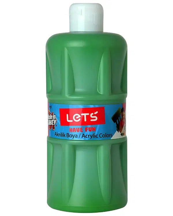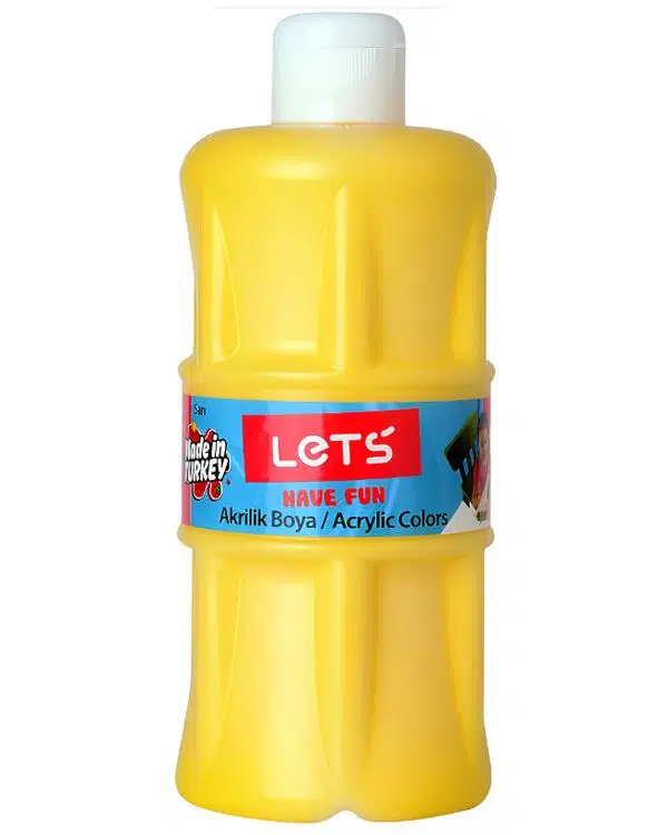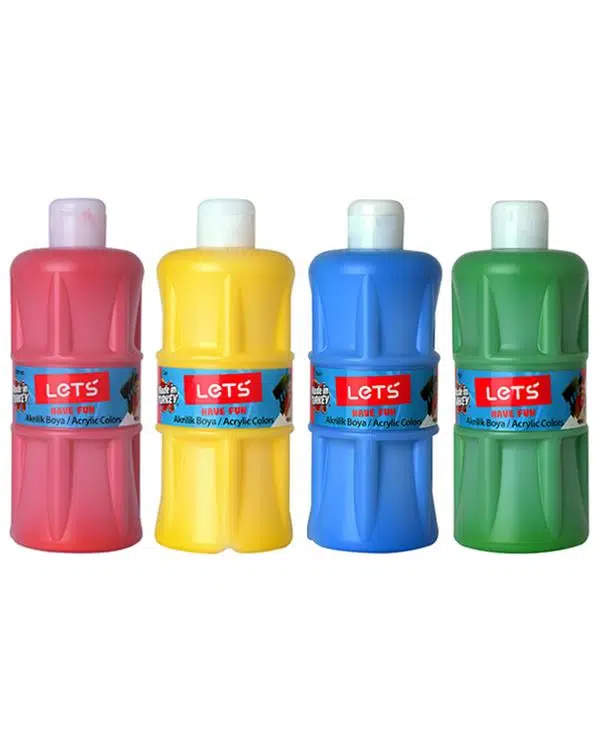Çok amaçlı Lets Akrilik Boya 500 ml’lik plastik şişede sunulur.