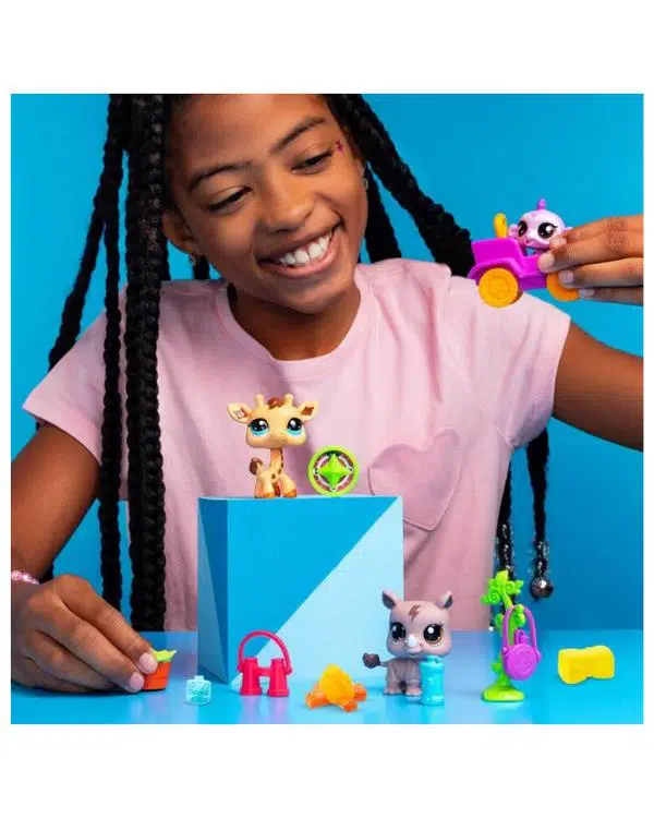 4 yaş ve üzeri çocukların kullanımı için uygundur. Minişler ile safari gezisinde eğlenceli zamanlar geçirmeye hazır olun. Çocuklarınız bu oyun seti ile minişleri arabaya bindirebilir, onlarla kamp yapabilir ve birbirinden lezzetli atıştırmalıkların tadına bakabilirler. Minişler sallanan sevimli bir kafaya sahiptir. Bu evcil hayvanlar, daha fazla eğlence için Littlest Pet Shop web sitesinde kullanabileceğiniz sanal bir kod ile gelmektedir. Evcil hayvanların kilidini açmak, yeni maceralara atılmak için jeton kodunu kullanabileceksiniz.