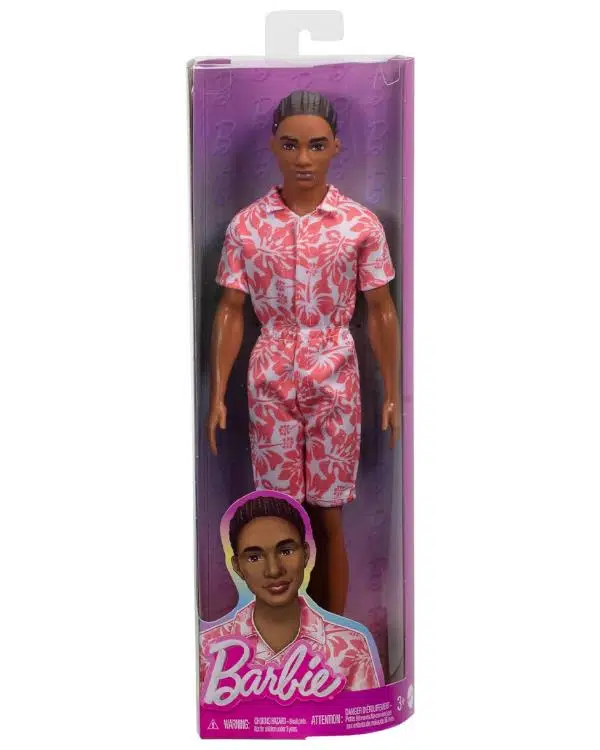 Mattel Barbie Fashionistas Yakışıklı Ken Bebek HYT99, Fashionistas serisinden #235 numaralı modelidir. Bu Ken, kahverengi saçlarını örgülü bir modelle taşıyor ve beyaz‑koral tonlarında, Hawaii desenli bir tulumla stilsiz bir yaz görünümü sunuyor; parıltılı yeşil sandaletleriyle enerjik ve neşeli bir hava yaratıyor