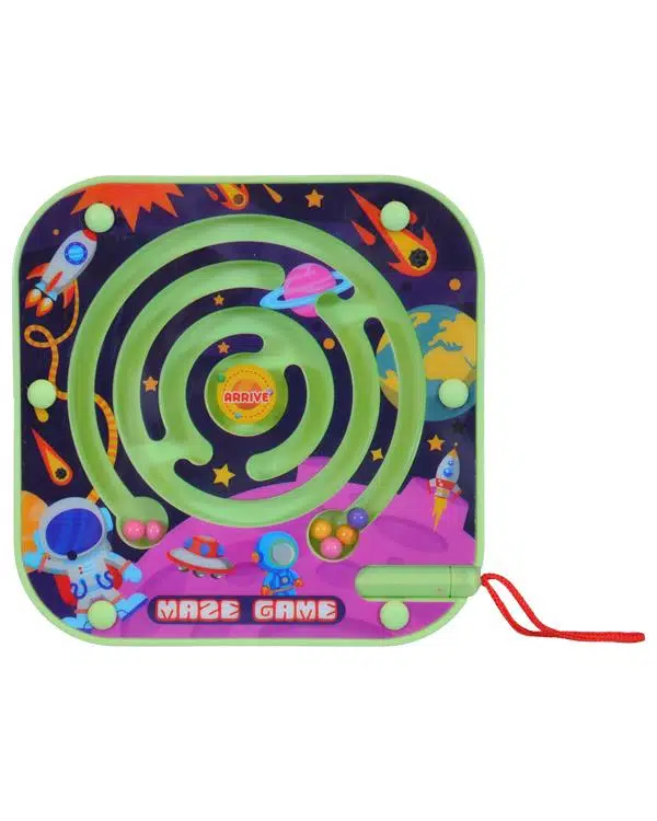 Labirent Oyunu, çocukların motor becerilerini geliştirmelerine yardımcı olur. Mıknatıs kalem ile yol içindeki demir bilyalara yön vererek, çocuklar hem eğlenir hem de mantık yürütme yeteneklerini güçlendirir.