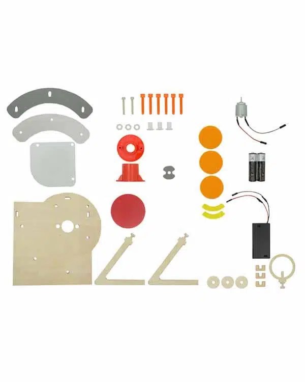 Kutu içerisinde; ahşap, plastik, eva, kağıt, metal, yapıştırıcı parçalar, motor, pil, pil yuvası ve kurulum kılavuzu dahil 33 parça bulunmaktadır.