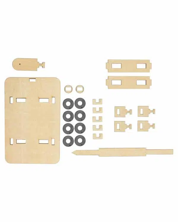 Kutu içerisinde; ahşap, parçalar, mıknatıs ve kurulum kılavuzu dahil tam 25 parça bulunmaktadır.