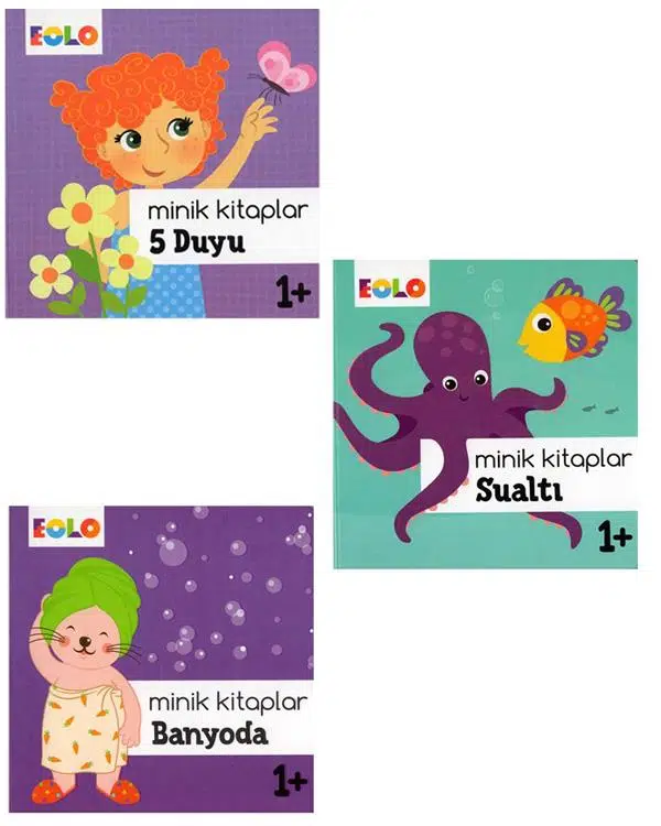Set üç minik kitaptan oluşmaktadır. Bunlar; 5 duyu, banyoda ve sualtı.