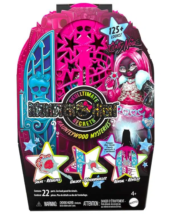 Monster High Skulltimate Secrets Hauntlywood Gizemli Catty Noir Bebek JBG82, seni gizemli bir dedektif macerasına davet ediyor! Catty Noir, Hauntlywood’un ışıltılı sahnelerine doğru yola çıktı… ancak bir anda ortadan kayboldu! Şimdi bu sırrı çözmek senin görevin. Büyüteç şeklindeki sihirli anahtarı kullanarak haritadaki ipuçlarını keşfet, gizemli dolabın kapılarını aç ve 19’dan fazla sürprizi tek tek ortaya çıkar!
