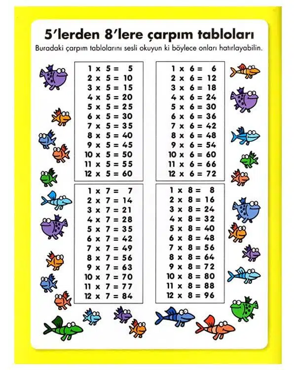 Bu eğlenceli ve çıkartmalı çarpım tablosu kitabında çocuklar matematiği keyifli bir şekilde ve farklı yollarla öğreniyor. Zengin içeriği, renkli figürleri ile çarpmayı ve bölmeyi farklı etkinliklerle daha kolay ve keyifle öğreniyor. Okula yardımcı bir kitap olması ise hem okulda öğrendiklerini pekiştirmesi hem de matematik becerisini sistematik bir şekilde geliştirmesini sağlıyor. Çocuklar kitabı başarıyla bitirdiğinde ödül sertifikası onları bekliyor olacak.