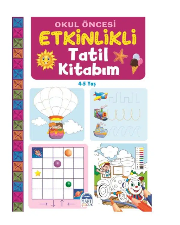 Çocukların yıl içerisinde öğrendikleri bilgi ve becerileri pekiştirmeleri amacıyla hazırlanmıştır. Çocuklar bir taraftan tatilin keyfini çıkarırken diğer taraftan hem eğlenecekler hem de öğrenecekler. Tatil kitabı çocukların bilişsel, görsel, dikkat, koordinasyon, planlama yapabilme gibi özelliklerini geliştirecek şekilde hazırlanmıştır. Renkli ve hareketli resimlerle çocukların ilgisi diri ve canlı tutulmaya çalışılmıştır.