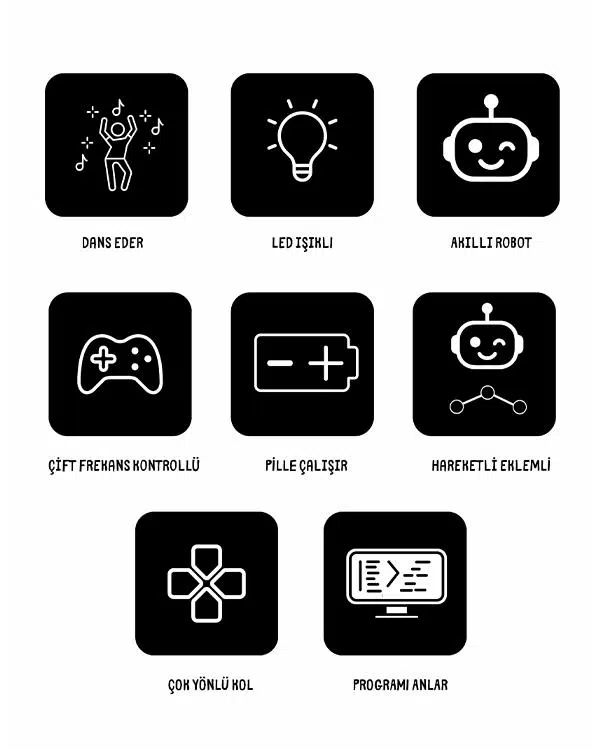 Modelin en dikkat çeken özelliklerinden biri olan programlanabilir hareket sistemi, çocukların kumanda üzerinden istedikleri komutları sırayla kaydedip robotun bu hareketleri otomatik olarak tekrar etmesini sağlar. Bu akıllı işleyiş, sıralı düşünme, problem çözme ve motor becerilerinin gelişimine katkı sunar. Sağlam gövde yapısı, çift frekanslı kontrol sistemi ve çok yönlü hareket altyapısı sayesinde robot hem stabil hem de akıcı bir şekilde performans sergiler.