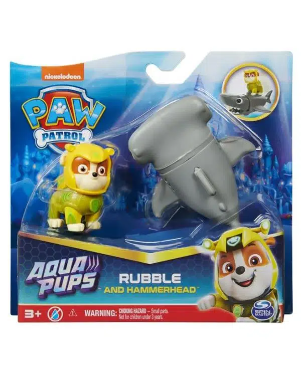 Paw Patrol'un sevimli karakterlerini içeren bu aksiyon dolu figürlerle kurtarma görevine katılın. En sevdiğiniz yavrular ve yeni su arkadaşlarıyla açık denizlerde heyecan verici kurtarma maceralarına hazır olun. Gerçek balık pulu detaylarına sahip sarı Aqua Pups dalış kıyafeti ve süper havalı dalgıç kaskı giyen Rubble, harekete geçip günü kurtarmaya hazır.