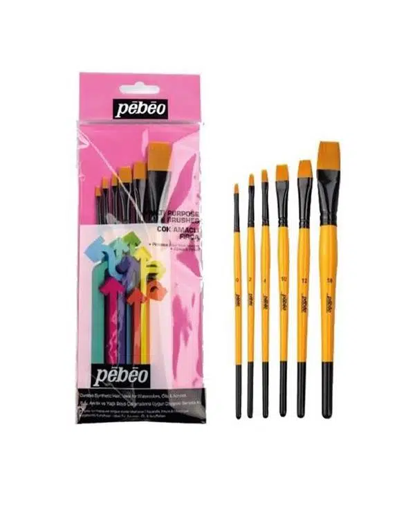 Pebeo Set-3 6 adet çok amaçlı fırça içermektedir. Fırçalar sulu akrilik ve yağlı boya çalışmalarına uygundur. Malzemesi dayanıklı sentetik kıldır.