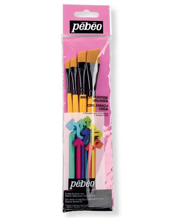 Pebeo Set-9 4 adet çok amaçlı fırça içermektedir. Fırçalar sulu akrilik ve yağlı boya çalışmalarına uygundur. Malzemesi dayanıklı sentetik kıldır.