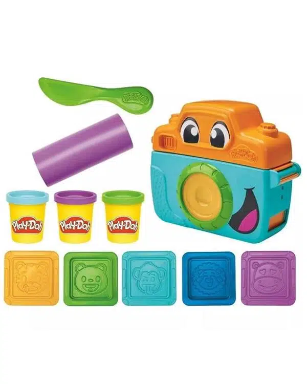 Set İçeriği: Farklı renklerde Play-Doh oyun hamurları. Fotoğraf makinesi aparatı ve aksesuarlar (örn. çerçeveler, gözlükler). Şekil verme kalıpları ve çeşitli araçlar; çocukların hamuru şekillendirmelerine yardımcı olur.
