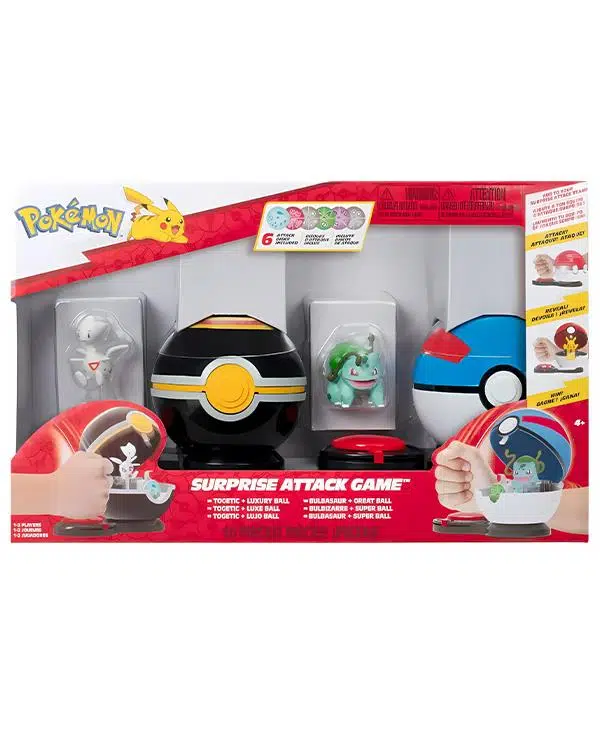 Pokémon Sürpriz Saldırı Oyunu Togetic ve LuxurySeti, kafa kafaya heyecan dolu mücadeleler için tasarlanmıştır! Bu setle Pokémon’unuzu seçin, saldırı disklerinizi kullanarak rakiplerinizi alt edin ve en güçlü saldırıyı yaparak kazanın.