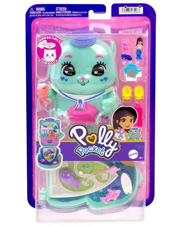 Polly Pocket Kedicik Yelkende mikro oyun seti, 1 mikro bebek ve 2 evcil hayvan dahil 10 adet aksesuarla birlikte gelir.