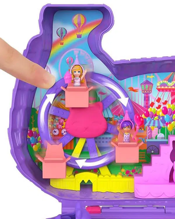 Bebekler dönme dolaba binebilir, çadırda oyun oynayabilir veya mini hız treninde maceraya atılabilir. Parti temalı aksesuarlar ve sevimli kediciğin pinyatası ile eğlence hiç bitmez.
