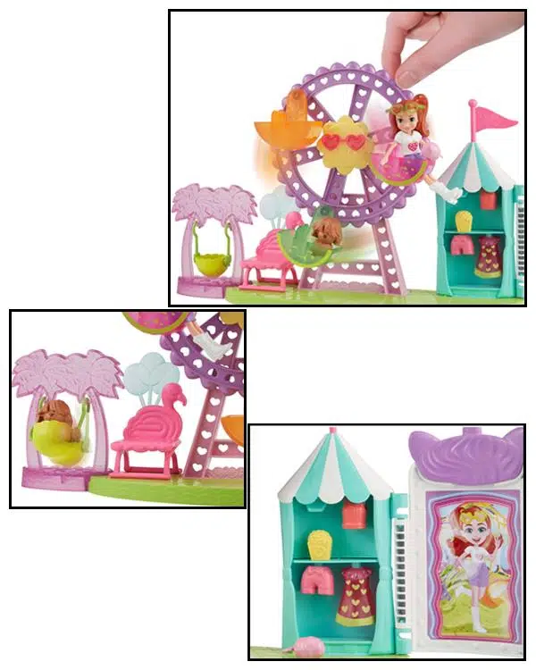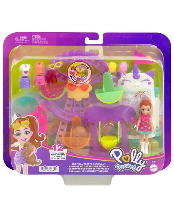 Tropikal eğlence karnavalına hoşgeldiniz. Çocuklar, Polly Pocket oyun seti herkesi meyve tadında eğlencelere davet ediyor. Bu oyun setinde 7 cm Lila bebek, 1 adet yavru köpek ve lunapark temalı 10 aksesuar yer almaktadır. Çocuklar; kavunlu elbise, kalp şeklinde gözlük, pamuk şeker dahil 10 farklı giysi ve aksesuarı kullanarak hayallerindeki karnaval eğlencesinin tadını çıkarabilir, Polly Pocket tüm oyun setlerini koleksiyonlarına ekleyebilir ve yeni maceralara heyecan verici hikayelerini oluşturabilirler.