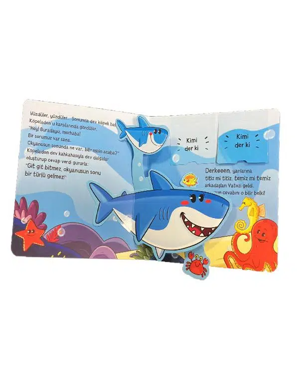 Okul öncesi dönemdeki çocukların merak duygularına hitap eden kitapta, çocuklar kitabın her sayfasında yer alan flip-flap açılan pencerelerde bulunan hayvanları ve okyanus yaşamını tanıyacaklar. Okyanusun sonunu keşfe çıkan beş arkadaşın heyecan dolu hikayeleri seni bekliyor! Hadi bu eğlenceye sizde katılın. Kapağı sert karton olarak tasarlanmıştır.