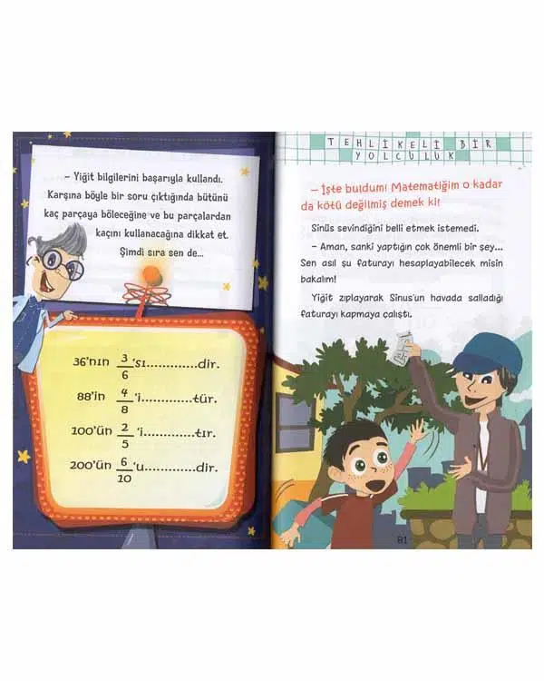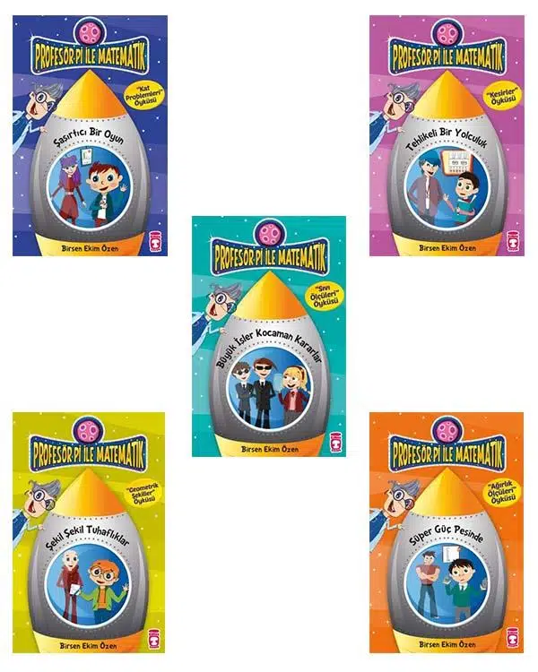 Set içerisinde; Büyük İşler Kocaman Kararlar-Sıvı Ölçüleri Öyküsü, Süper Güç Peşinde-Ağırlık Ölçüleri Öyküsü, Tehlikeli Bir Yolculuk-Kesirler Öyküsü, Şaşırtıcı Bir Oyun-Kat Problemleri Öyküsü ve Şekil Şekil Tuhaflıklar-Geometrik Şekiller Öyküsü kitapları ve değerlendirme testi yer almaktadır.