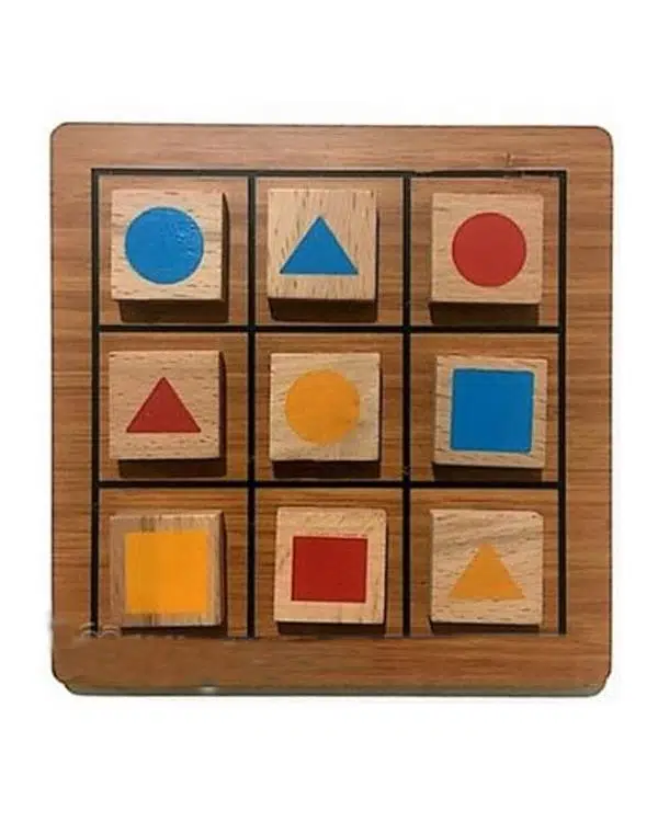 Kutu içindekiler: 16x16 cm ahşap oyun tahtası, 3x3 cm ahşap oyun blokları 9 adet, 80 çözümlü mantık bulmacası içeren kitapçık.