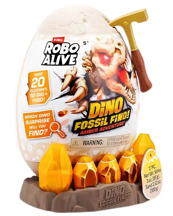Set içerisinde 1 dino yumurtası, 1 fosil dino, 1 araç, 1 slime, 1 kum, 2 büyük ve 3 küçük kehribar yumurta, 1 kafatası, 1 ayak izi, 1 trilobit, 1 dino fosil, 1 taban, 1 etiket ve 1 kullanım kılavuzu olmak üzere toplam 18 parça mevcuttur.