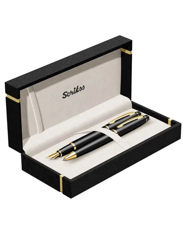 Scrikss 35 Siyah Altın Dolma Kalem ve Tükenmez Kalem Seti