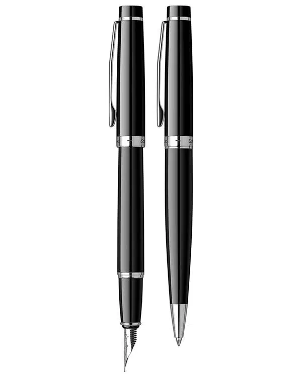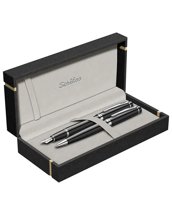 Scrikss Honour 38 Dolma Kalem ve Tükenmez Kalem Takımı Siyah Krom M Uç