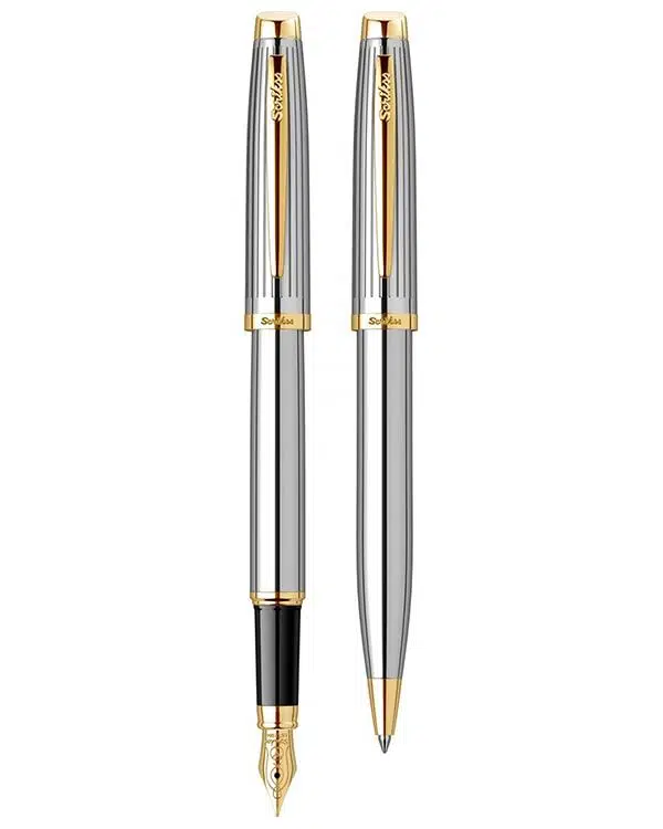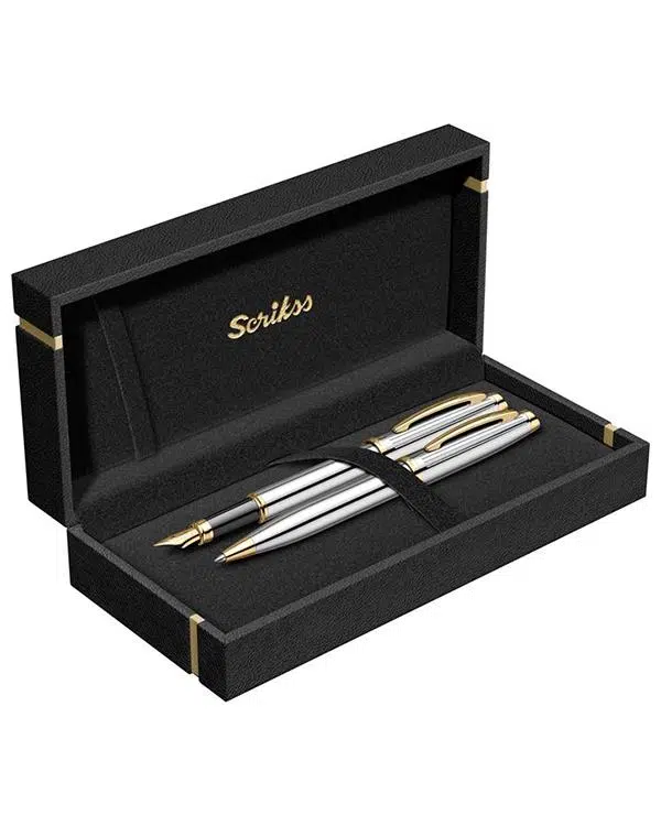 Scrikss Oscar 39 Dolma Kalem ve Tükenmez Kalem Krom Altın M Uç