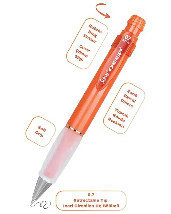 Serve Deep Mekanik Kurşun Kalem 07mm Grip ve Silgi Yedekli Set Kiremit