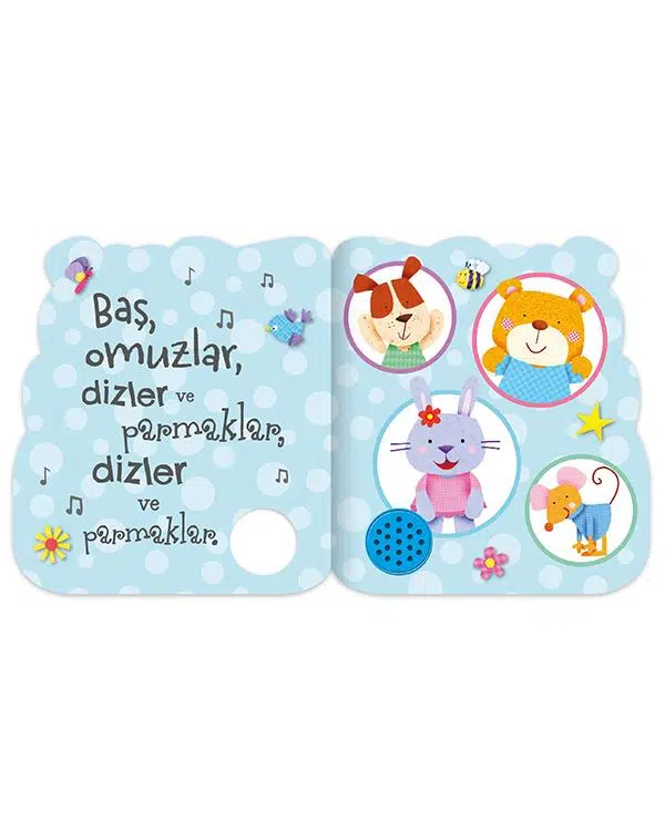 Çocukların çok sevdiği klasik çocuk şarkısı artık sesli kitap formatında! Sesli Kitaplar Baş Omuzlar Dizler ve Parmaklar, miniklerin hem eğlenmesini hem de öğrenmesini sağlayan interaktif bir kitap deneyimi sunuyor.
