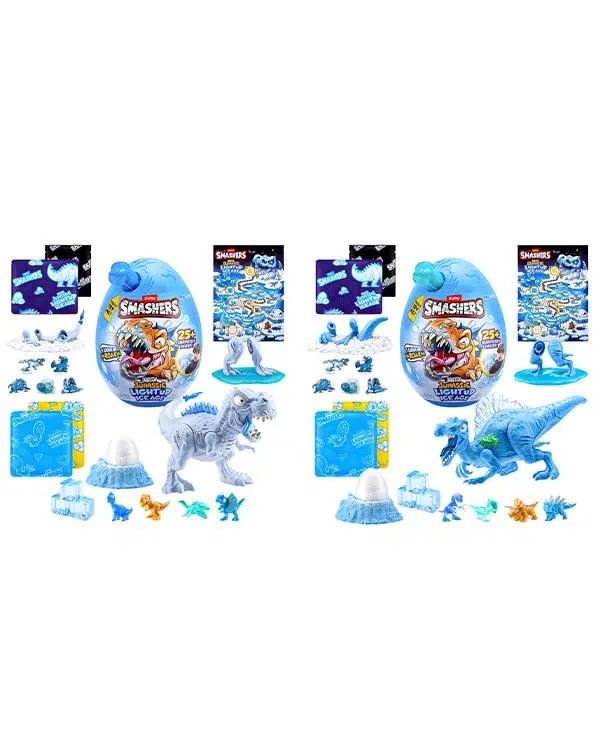 İçindekiler: 1 büyük dino yumurtası, 4 set dino gövde parçası, 5 adet 3 boyutlu çıkartma, 1 dino slime, 1 dino kumu, 1 paket sıkıştırabilir küp, 4 mini Smash yumurta, 4 sürpriz karakter, 1 Smash yumurta yapıcı, 1 DNA tüpü, 1 hazine haritası, 1 kullanım kılavuzu, 1 koleksiyoncu rehberi.