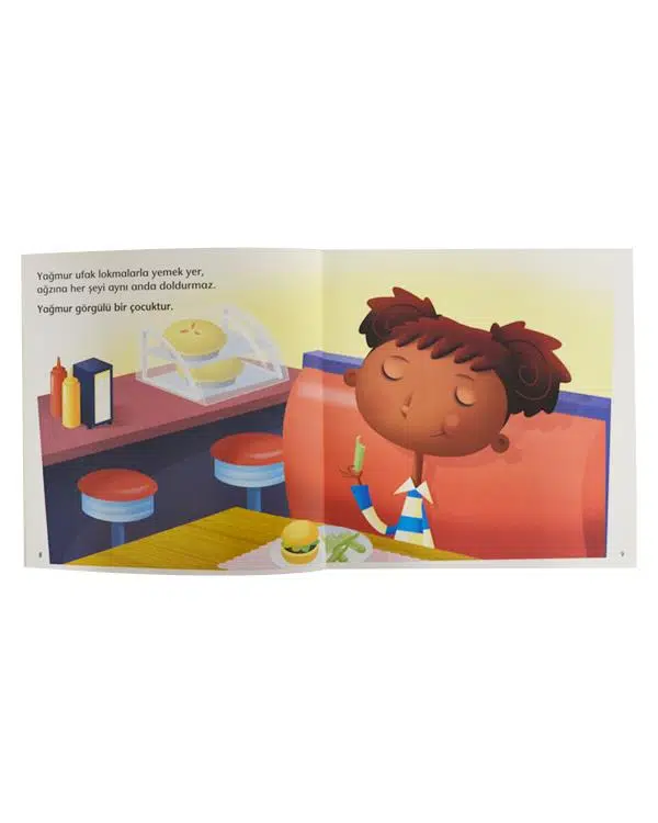 Haydi çocuklar, görgü kurallarına uyarak yemeklerin nasıl daha zevkli geçebileceğini öğrenelim. Serideki kitaplarla çocuklara, toplum içinde nasıl davranmaları gerektiği konusundaki temel bilgiler albenili, basit resimler eşliğinde aktarılmaktadır. Temel görgü kurallarının, görsel öğelerin de desteğiyle kitapla ilk ilişkinin kurulduğu yaşlardan itibaren benimsetilmesi hedeflenmektedir.