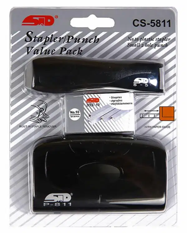 Hem zımba makinesi hem delgeç siyah renktedir.