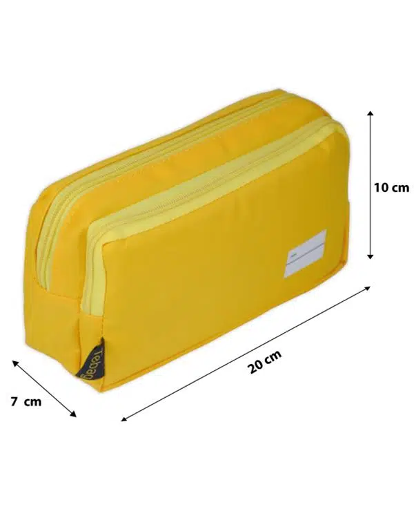 Tebag İki Gözlü Sarı Kalem Çantası, sade ve şık tasarımıyla hem günlük kullanım hem de okul için ideal bir seçenektir. Dayanıklı 610 denye imperteks su itici kumaştan üretilen bu model, sağlam yapısı sayesinde uzun süreli kullanım imkânı sunar. İki fermuarlı bölmesi sayesinde kalemlerinizi ve yazı gereçlerinizi düzenli bir şekilde taşımanızı kolaylaştırır. Ön yüzünde yer alan isim yazma alanı, çantanın kolayca kişiselleştirilmesine imkân tanır.