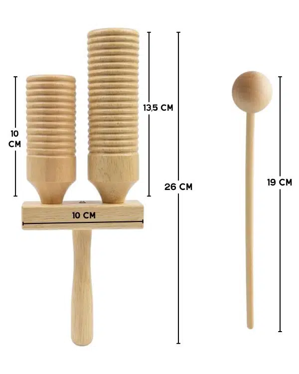 26 cm uzunluğundaki ahşap gövdesi elde rahat tutulur ve dengeli bir kullanım sunar. Çift gövdeli yapısı sayesinde farklı ses karakterleri elde edilmesine yardımcı olur ve ritim çalışmalarında daha çeşitli kullanıma imkân verir.